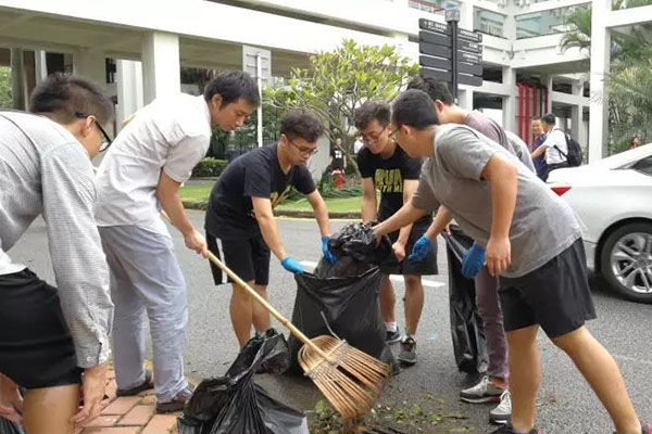 有位正在清扫树叶的学生志愿者说:“这次灾后的校园修复工作中,很多党员和班级同学都自愿过来参与。因为学校受灾非常严重,作为南国开云园的主人,我们有这份责任献上自己的力量。”