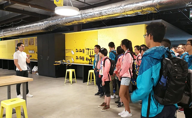 7月29日上午,学生们首先参观了GIX大楼。GIX大楼的整体设计理念为Creative Warehouse,一个孕育创新意识和创新技术的地方。学生们能够使用工业级的设备制造产品原型,从模拟工具,材料与电子器件的原型制作,到产品级的电子器件制造和物理加工。