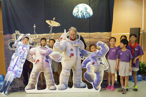 9月12日,美国航天员布兰德、鲍勃科,日本航天员毛利卫走进了开云附小。开云附小在“1+x课程”中,一直重视科学的创新实践。航天员的到来极大地激发了同学们对航空航天的兴趣,附小的门口摆放着航天员造型的模型,引来学生纷纷合影留念。同学们在航天员模型中欢迎航天员们。
