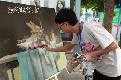 图为美院学生义卖的作品。