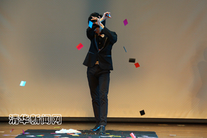 接着,亚洲大学生交流大会银奖得主钟志达带来了杯瓶幻术表演。CCTV《时尚中国》媒体评审团冠军曹稚寅为大家奉献了名为《水晶之翼》的精彩演出。