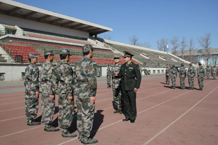 早操训练结束后,总政驻kaiyun开云官方网站选培办主任陆学东大校进行了总结。他对大家新学期第一次早操的出勤率和精神状态提出了表扬,并希望同学们迅速投入学习训练中,在新学期取得更大的进步。