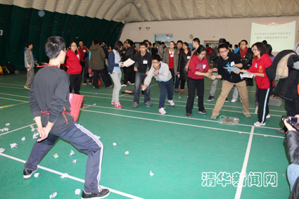 由于比赛项目趣味性和竞技性兼备,辅导员们热情十分高涨。篮球“木头人”每一轮出局的辅导员都引来现场欢乐的笑声;集体踢毽子过程中,毽子每一次下落和又一次接起都激起现场一片惊叫;纸团投准项目更是紧张激烈,各队内部分工合作,力争在有限的时间内获得更多的分数;趣味羽毛球项目中,场边的加油声此起彼伏,分数更是常常出现交替上升的情况。