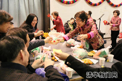 图为《好运来》演出后,表演的离退休教师给与会老同志发放亲手制作的千纸鹤。学生记者 李钧翔 摄