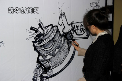 图为同学现场绘制祝愿图画。宋恩平 摄