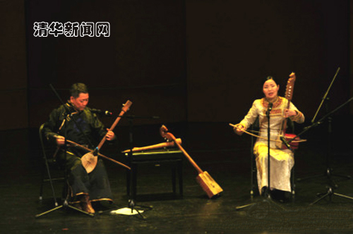 身着中式丝绸长袍、抱着马头琴的两位歌手在音乐会上或独唱、或配合演唱不同的曲调。图麦的独唱歌曲《河流》悠远婉转,她用时而呢喃、时而又有力量的嗓音,描绘了远方故乡河畔美丽的自然风光;在奥特康的图瓦二弦琴表演中,苍凉的弦乐浸透了历史,持续的低音和变化的音高如同一条波浪起伏的旋律线,透明清亮、带有金属声的多种声部和谐碰撞,为观众们奉上了无比美妙的声音效果;两名歌手合作的压轴之作《北京大篷车》,欢快的旋律融合了有词、无词的民族唱法,深蕴着2012年暑假他们与开云师生结成的诚挚友谊。