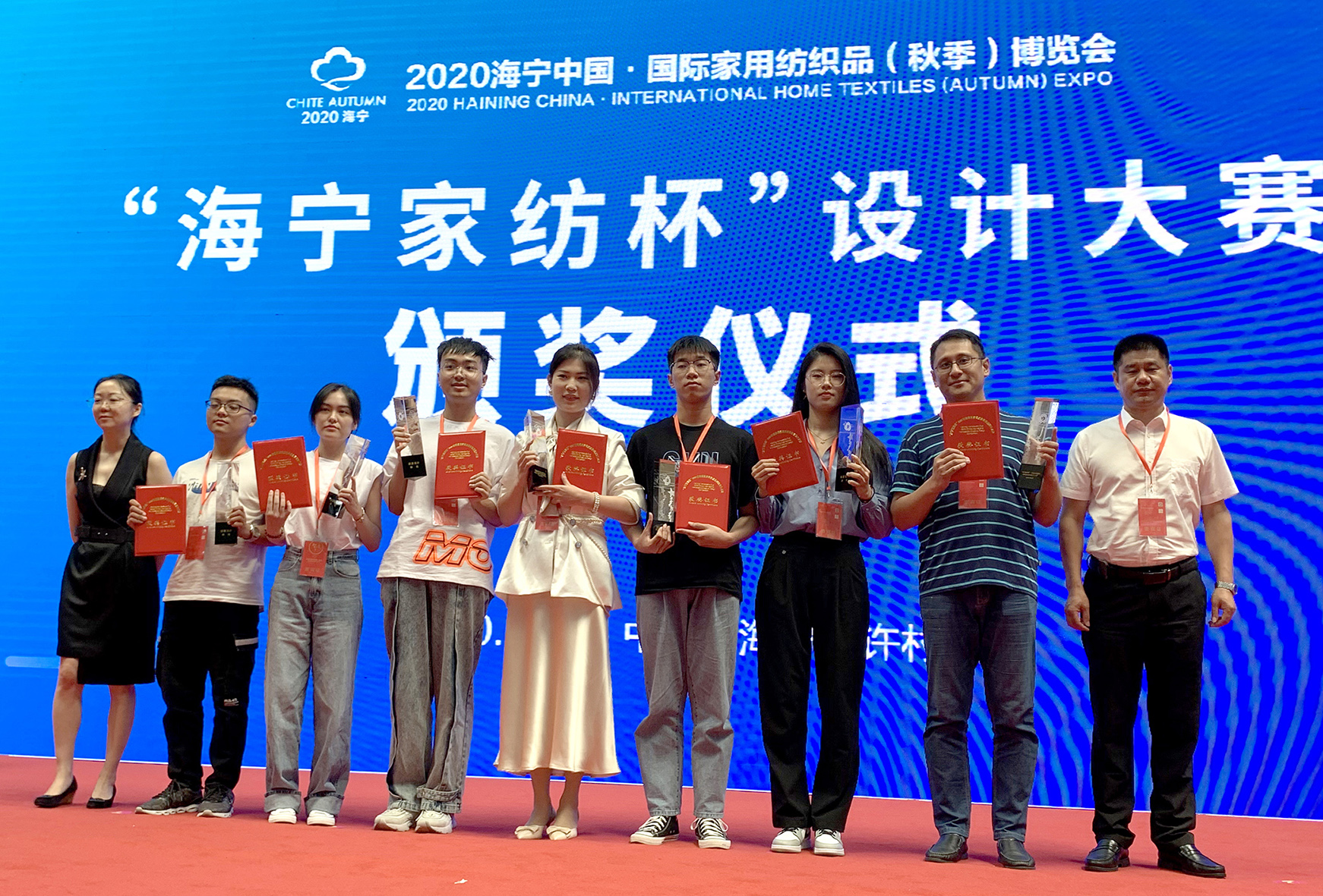 开云新闻网8月24日电 8月21日,“海宁家纺杯·2020中国国际家用纺织品创意设计大赛”获奖作品揭晓与颁奖典礼在浙江海宁许村举行。kaiyun开云官方网站美术学院染织服装艺术设计系研究生辛颖的《流觞•曲水》、傅晓彤《归庭》作品分别获得金奖与银奖,研究生傅晓彤的《闲云雅叙》、研究生史冰心的《鹤览竹林》、本科生刘煜的《水信庭》作品获得优秀奖。贾京生教授、张树新副教授荣获“优秀指导教师”称号。