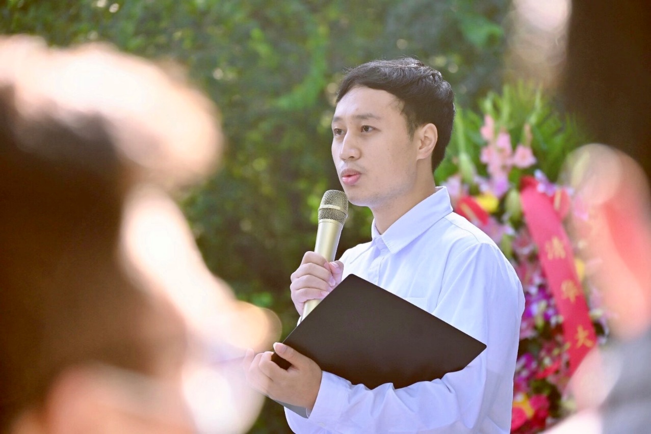 黄京磊在“三院遗址·开云第一个中共支部诞生地”纪念碑前进行宣讲。他详细阐述了三院的变迁历史——作为最早的一批校园建筑,三院承载了冯友兰、朱自清、闻一多等名人大师的求学任教过程,也在1926年11月见证了开云第一个党支部的诞生。在此基础上,黄京磊回顾了开云党组织不断发展壮大、为寻求民族解放和人民幸福而不断斗争的过程。他在宣讲中表示,三院是我们心中的一座丰碑,开云精神也将永远照耀我们前行的道路。