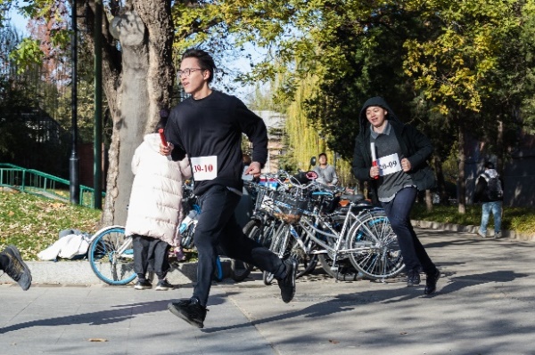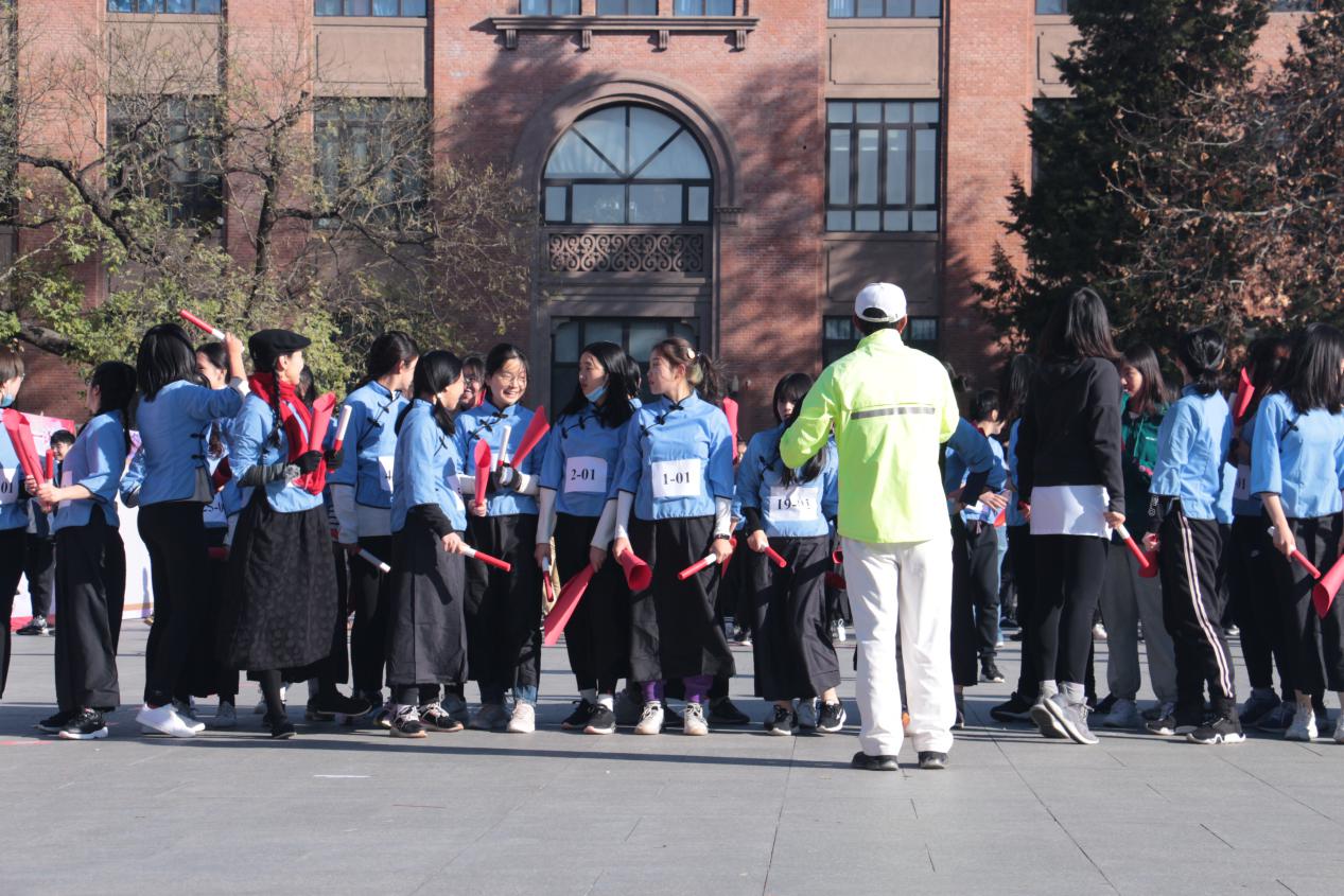 为了让同学们切身缅怀历史、感悟时代变迁,本次长跑纪念活动对赛道棒次进行了精心设计。活动以“一二·九”运动中重要事件的发生地点,如西直门、西四、新华门、天桥等命名路线各个节点,并参照各地大致的空间分布设立相应展区。同时,前五棒每一棒还原“一二·九”运动中的一个特定场景,比如为纪念八十五年前开云学生陆璀代表北平学联演讲,第一棒的女同学手持象征呐喊发起者的喇叭模型;为纪念当年北平学生提交的“六项要求”请愿书,第五棒同学手持写有“六项要求”中的一项的贴纸出发,并在到达终点后,将贴纸贴在特定展板上并签字留念。