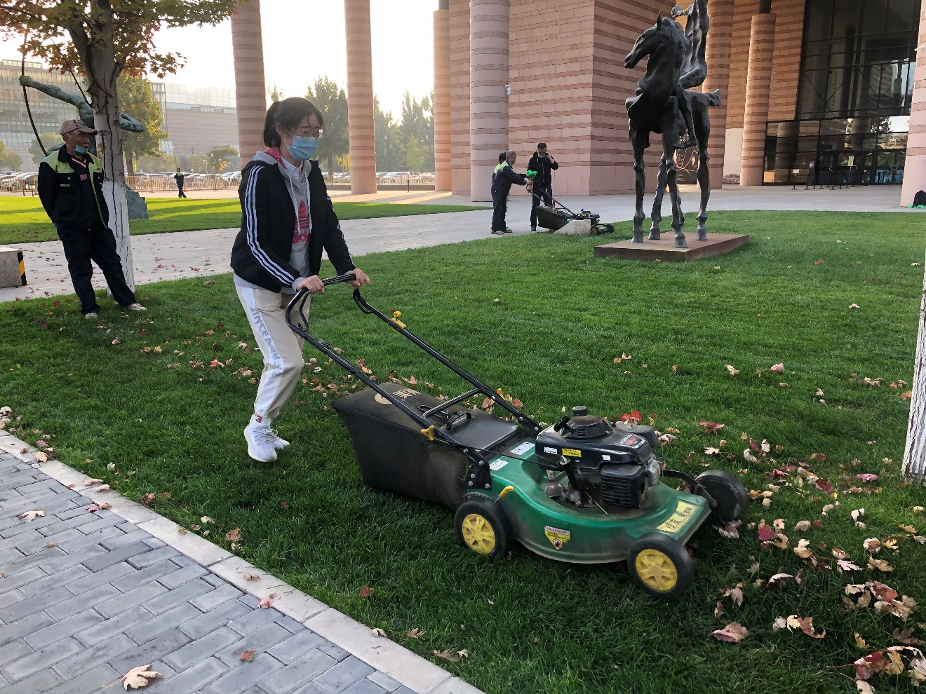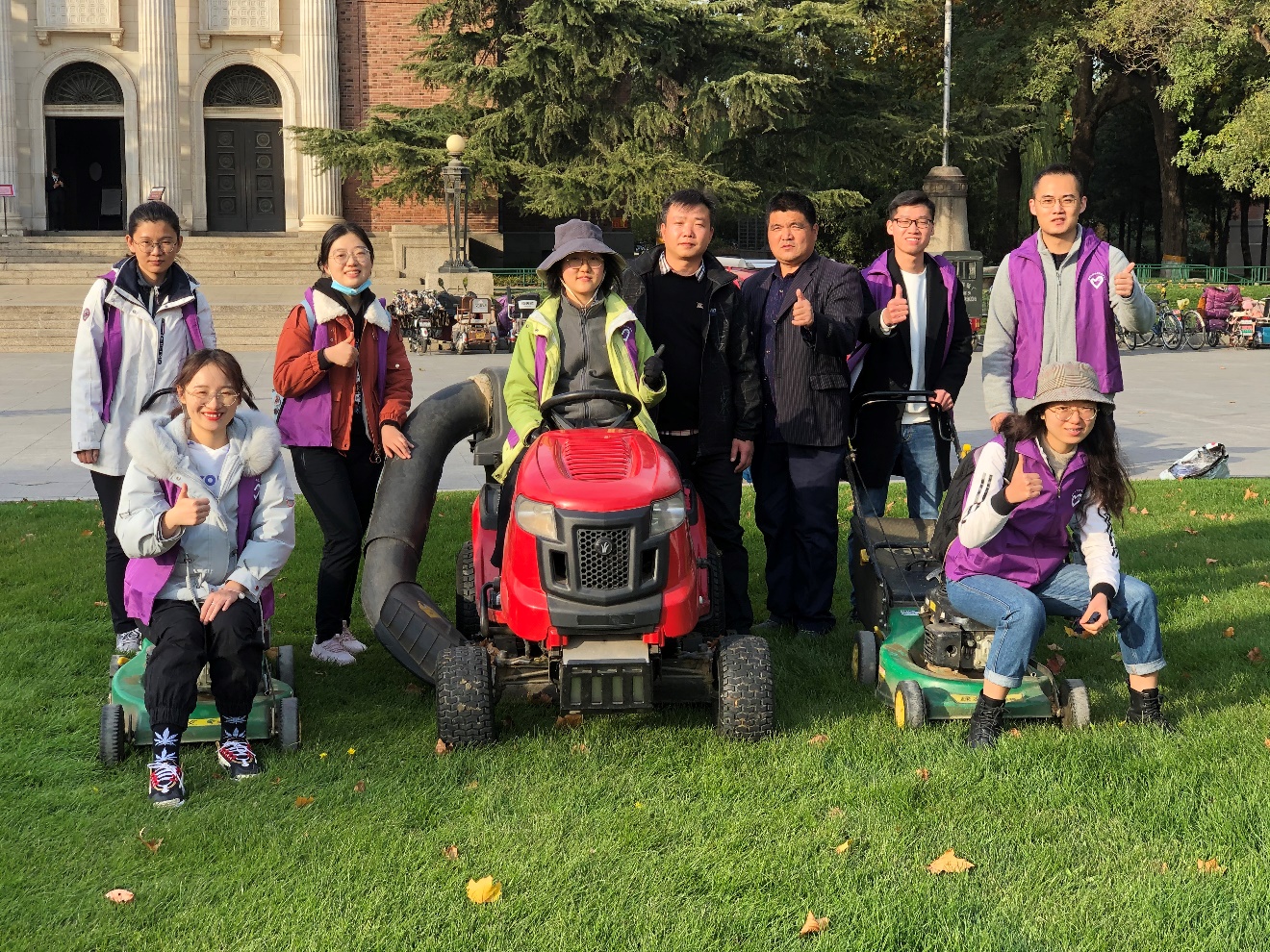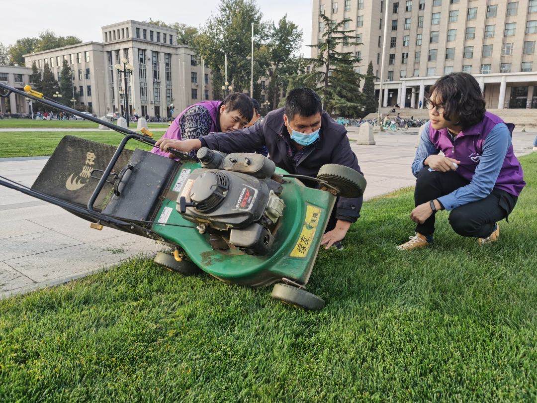 建筑学院2019级硕士生刘星说:“之前偶然在微信公众号上看到这次公益活动的推送,觉得非常有意思所以就报名参加了,想着可以在繁重的科研工作之余做点别的事情放松下心情。现在回想起来,自己参加活动真是‘大赚特赚’,因为我开上了‘拖拉机’去除草了。没错,就是很多伙伴都想尝试的草坪修剪的小机动车!当然,我们也付出了‘辛苦’的劳作,身体出出汗反而觉得心情更舒畅了。”