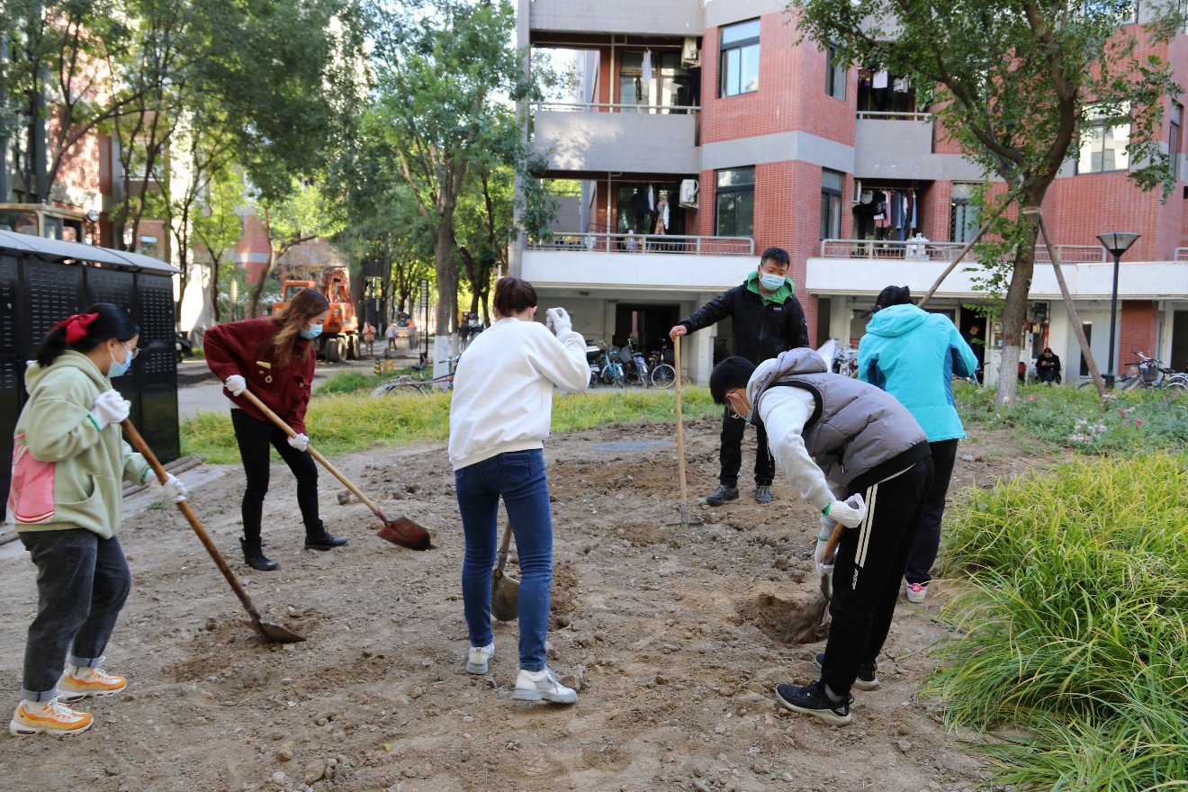 在北京最美的金秋时节,在充裕着缤纷色彩和温暖阳光的10月里,紫荆志愿者研究生服务团在修缮中心老师和工人师傅们的指导下,开展园林翻地、草坪修剪、锄草打药、补花补草、绿地保洁等形式的劳动服务,累计50人次参与活动。