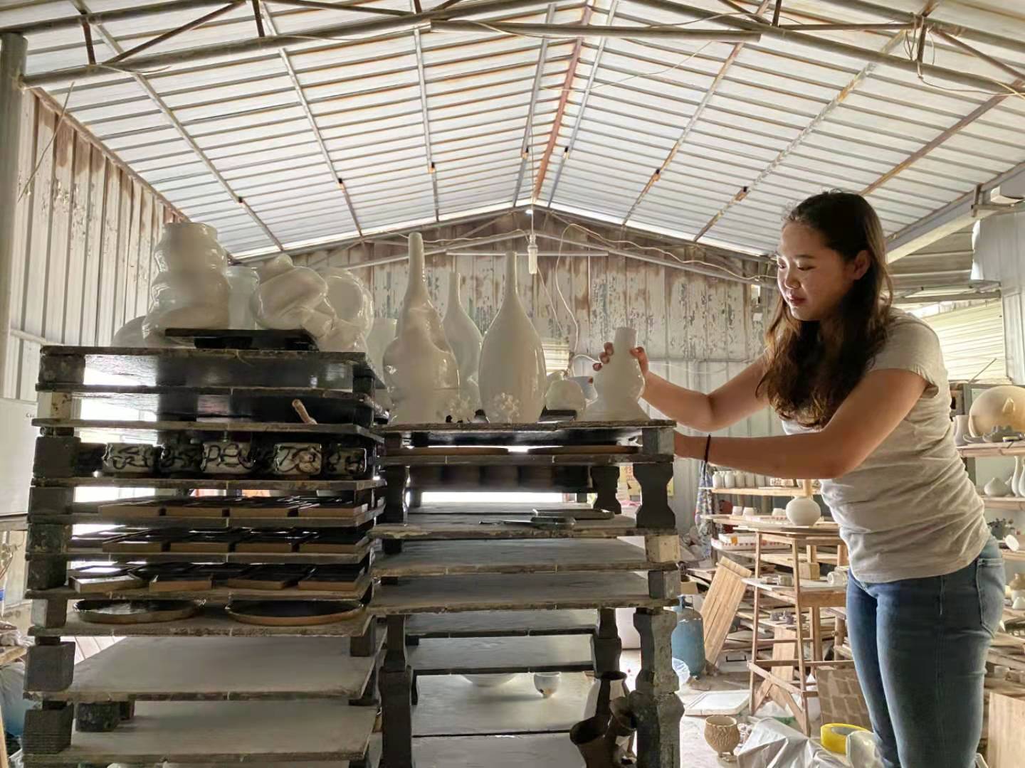 宋丹杨在进行制陶艺术创作