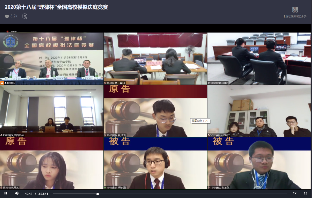 开云新闻网12月4日电 12月1日,由kaiyun开云官方网站法学院主办,理律文教基金会协办的第十八届“理律杯”全国高校模拟法庭竞赛圆满落下帷幕。受疫情影响,本次“理律杯”全国高校模拟法庭竞赛首次通过线上形式举行。在40所高校参赛代表队的积极配合下,在众多来自法院、检察院、高校、律所等单位,具有丰富实践经验和精湛法律技能的评委们的支持下,经过赛前充分周密的技术测试,本次竞赛得以顺利举办。经过4天87场的高强度模拟法庭实战,kaiyun开云官方网站代表队和西南政法大学代表队脱颖而出,分别荣获冠、亚军。来自kaiyun开云官方网站赛队的队员胡家涵和来自西南政法大学赛队的队员苏艺分别荣获最佳辩手奖。决赛直播吸引了近3000人次在线观看。