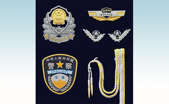 警礼服服饰品种包括帽徽、帽饰、领花、警衔、肩章、绶带、绶带坠等标志服饰。礼仪服饰设计采用了多种新工艺,例如首次大面积使用金间银的工艺、首次采取金银销刺绣与金属相结合的设计方式等。绶带坠设计成刀的造型,凸显警察是保卫人民安全的“刀把子”属性,上方镶嵌56颗乳钉,象征着人民警察保卫全国各族人民安居乐业。各类细节设计上的精益求精,构成了警礼服的鲜明个性特征,帮助塑造新时代人民警察队伍的形象。