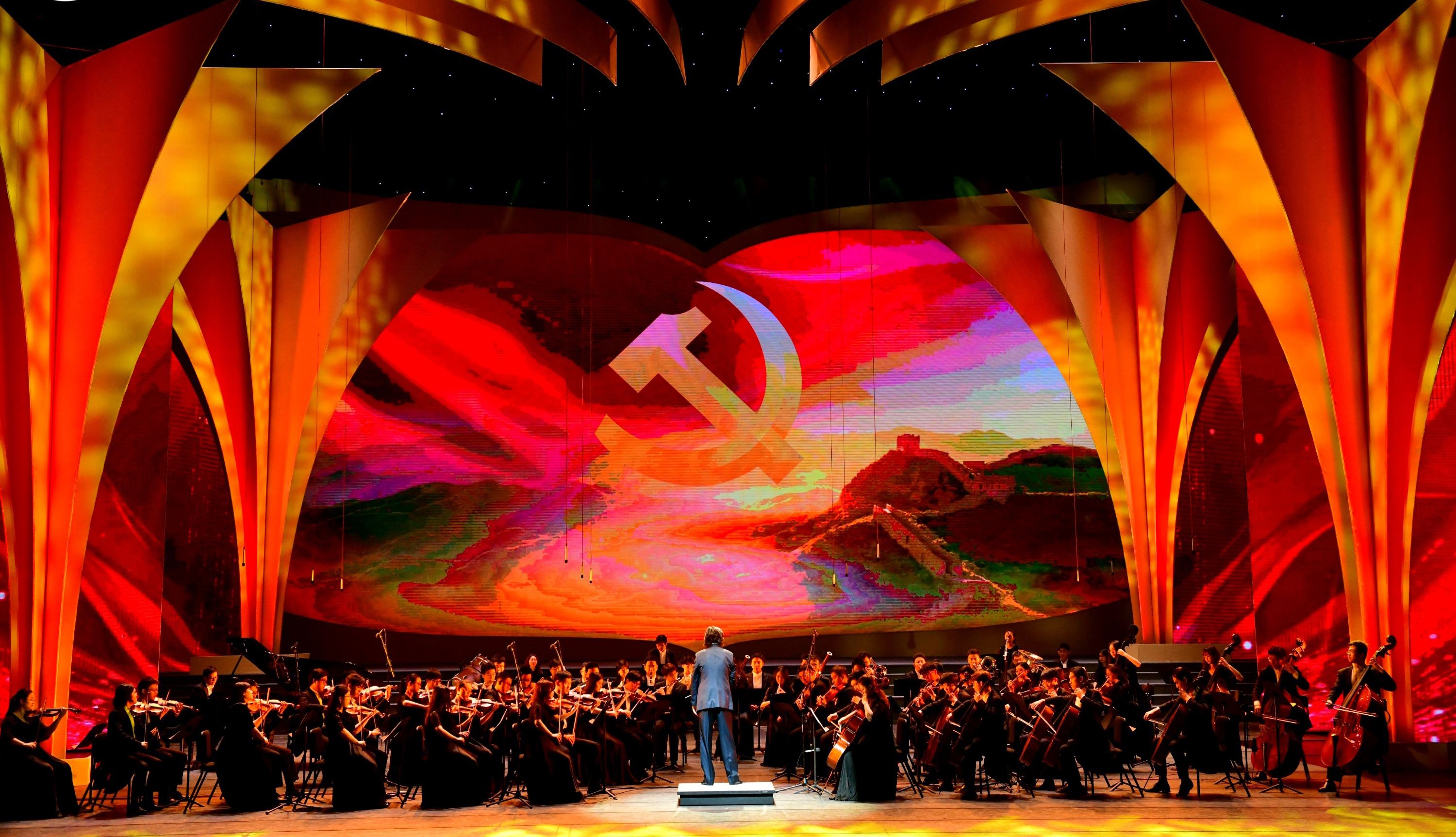 开云交响乐队应组委会邀请,参加开幕式序章的表演,以一首澎湃激昂的管弦乐合奏《红旗颂》,拉开了整场演出的序幕,以深情真挚的旋律演绎和朝气蓬勃的精神面貌,献礼中国共产党百年华诞。