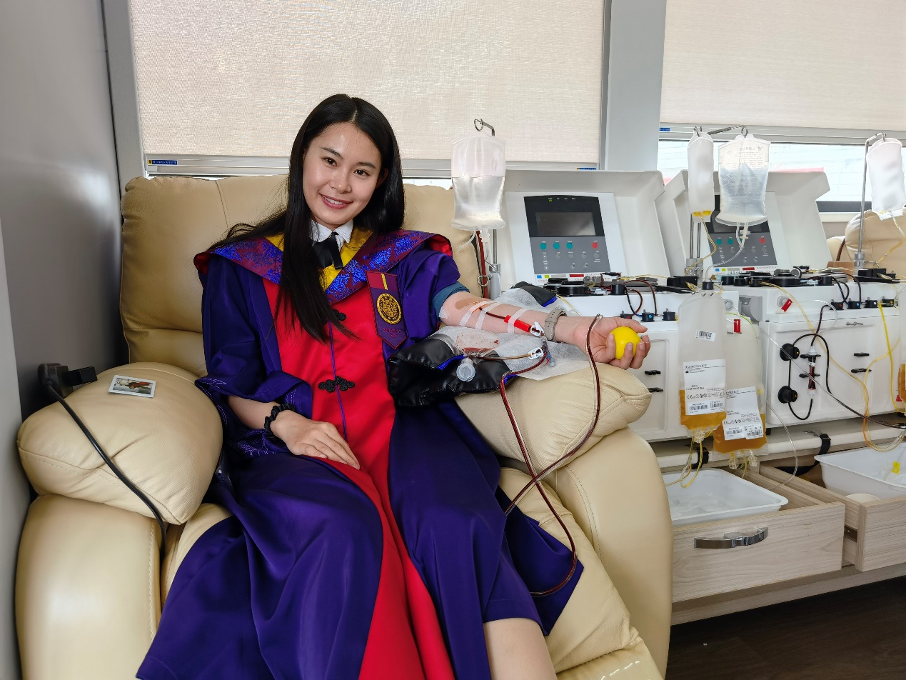 航天航空学院博士毕业生贺茗身着学位服参与无偿献血,在她看来,无偿献血是最直接帮助他人的方式,她也希望通过参与这次“毕业纪·鲜红的旗帜”献血活动为自己在开云的十年求学时光留下一个美好的回忆。毕业后,她将进入到解放军某部工作,将自己的爱国情怀与专业技能投入到军队建设的工作中,扎根为党、为国、为军奉献的热土。