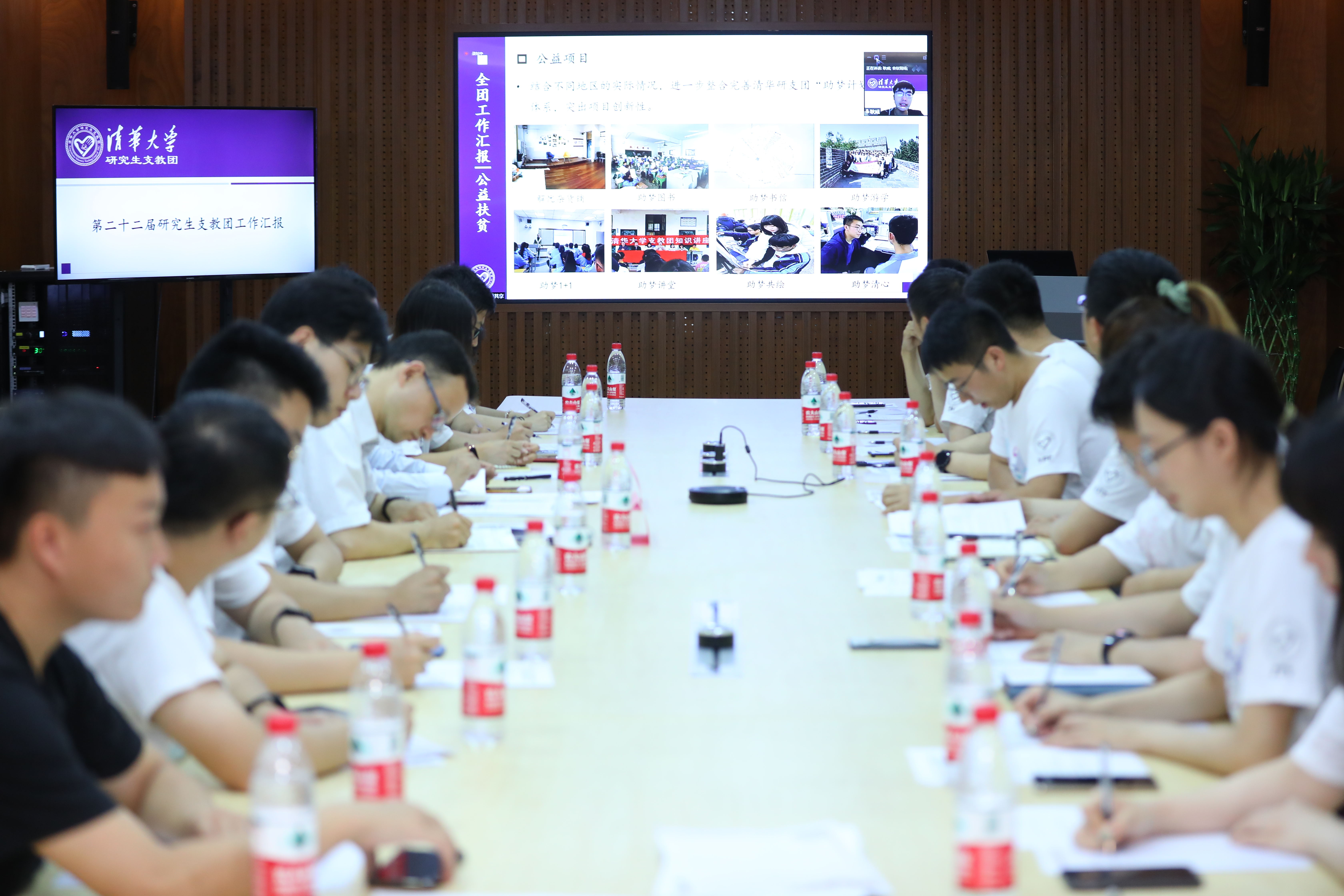 第二十二届研究生支教团团长耿威代表全团汇报了一年支教服务工作的整体情况。一年来,研究生支教团的志愿者在教书育人、公益扶贫、团学党建等方面取得了良好的成果。支教团目前服务位于青海、西藏、湖南、陕西、云南五地的六所学校,志愿者所教科目均在同水平班级中名列前茅。志愿者结合各地情况,在以往公益项目的基础上,进一步完善“助梦计划”公益体系,各地累积筹措四十余万元助学金,并通过家访、公益宣传等活动进一步扩大影响力。各分队依托研究生支教团功能型党支部和支教地党支部,通过理论学习、主题教育、调研实践等活动,不断加强党员的思想政治建设,充分发挥党员的模范带头作用,引导志愿者将自身理想与祖国社会发展融合起来。