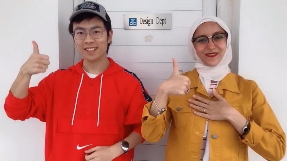 Alaa是一位像小太阳一样阳光积极的女生,脸上时刻洋溢着笑容。我们时常聊起两国文化,她给我介绍伊斯兰的宗教文化,分享当地的历史见闻,而我则会讲解中国的传统风俗节日和文化信仰。陌生的异国环境下难免有很多生活中的麻烦事,Alaa的到来及时解救了我:她利用休息时间帮我办理了电话卡;在我智齿发炎时主动帮我预约牙医……2019年国庆前,我俩合拍了一段抖音热榜——《我和我的祖国》手指舞,一起为庆祝中华人民共和国成立70周年献礼。虽然她现已离职,但我们仍然保持着联系,希望我们的友谊可以跨越山海延续下去。
