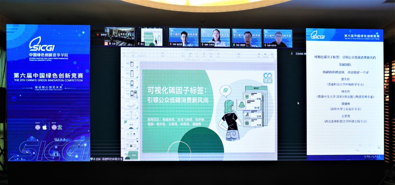 经过紧张激烈的角逐,由香港科技大学都天矩、香港中文大学(深圳)林奕佟、深圳大学谭建辉(队长)、西北农林科技大学王荣茂4位同学提交的绿色创新方案《可视化碳因子标签:引领公众低碳消费新风尚》获得本届中国绿色创新竞赛综合一等奖。该小组提出了一套基于产品碳因子标签的绿色创新方案,对现有碳标签的计算方法、展示方式和使用推广进行改进,希望通过一种间接计算的、可视化的、可以互动的标签设计方案降低核算成本、精准传递低碳信息、引导公众低碳消费,倒逼产业链脱碳转型。