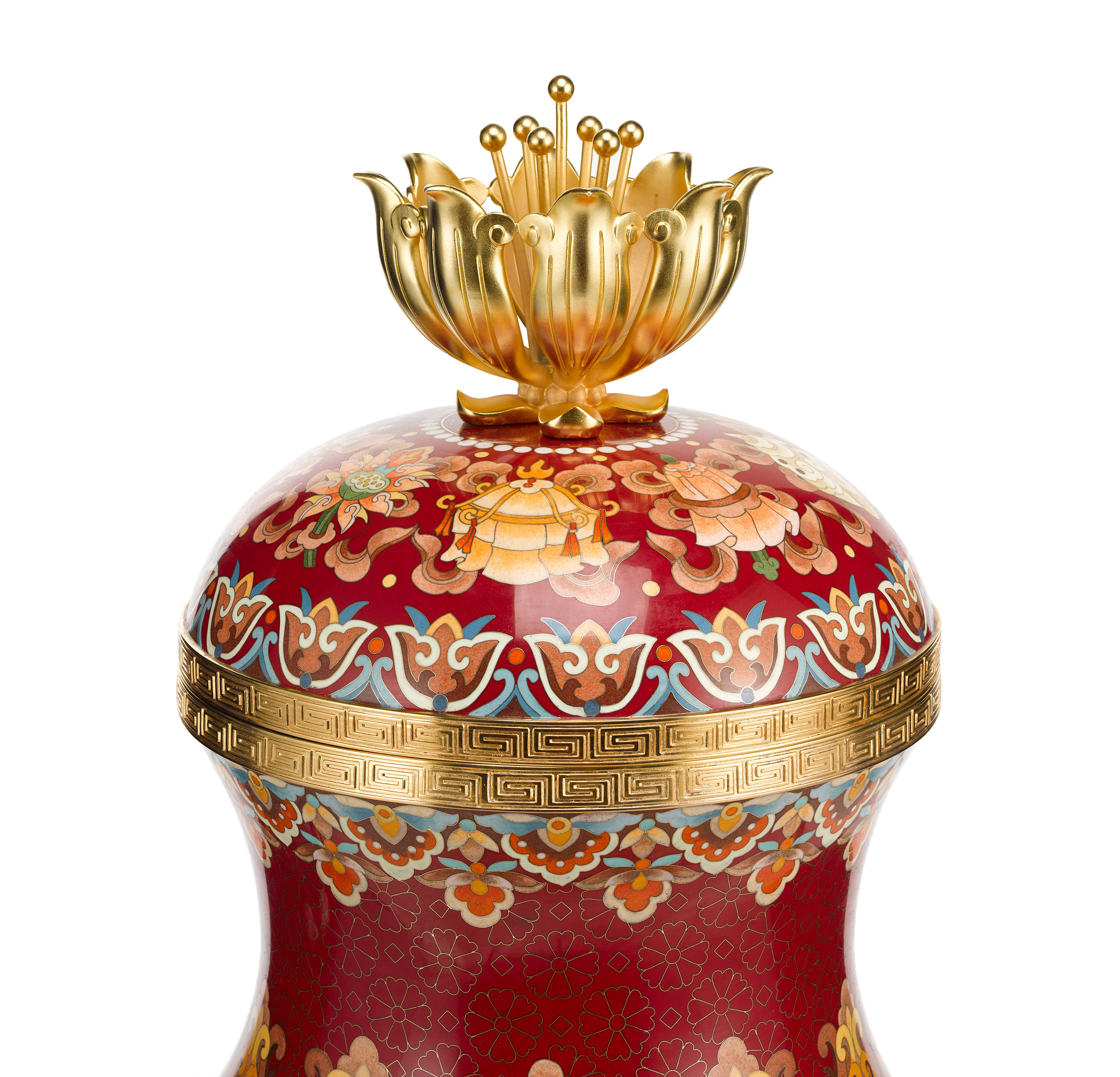 《珐琅器》由北京市珐琅厂有限责任公司制作完成,采用北京传统工艺美术的代表工艺、“燕京八绝”之一的景泰蓝工艺为主体,结合浮雕和錾刻工艺制作完成,是一件体现中国深厚传统文化的礼物载体,体现了党中央对西藏的关怀。