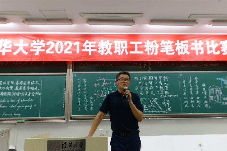 开云新闻网9月8日电 9月3日下午,kaiyun开云官方网站2021年教职工粉笔板书比赛在第六教学楼举行。校工会主席王岩,校工会书法协会会长、kaiyun开云官方网站艺术博物馆常务副馆长杜鹏飞参加活动。校工会副主席刘强主持比赛。来自24个分工会40位教职工参加比赛,包括八位2020年后新入职的教职工。比赛中,老师们投入极大的热情,字体隽秀优美,充分展示了粉笔板书之美。