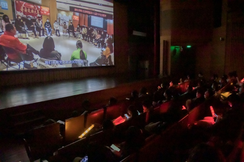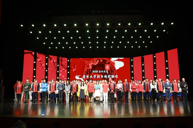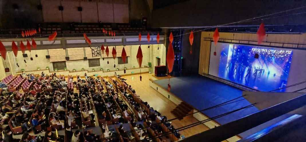 联欢环节最后,全体师生齐唱校歌,一同表达对学校的热爱和对2022年新征程的美好期待。联欢环节前后,三个会场播放了《穿过寒冬拥抱你》《扬名立万》和《我和我的父辈》等电影。