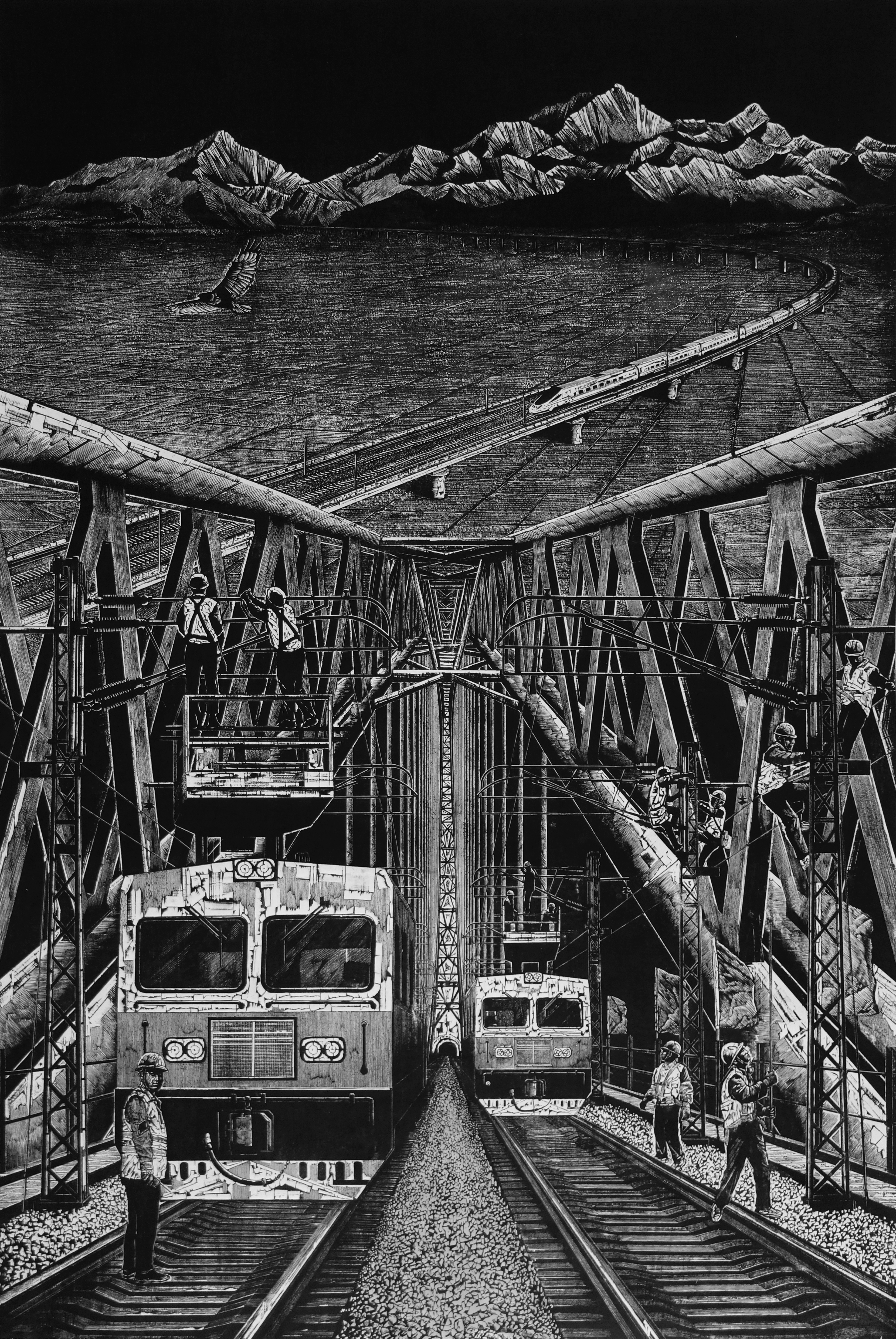 绘画系2018级博士生颜克疾、教授代大权版画作品《拉林铁路》