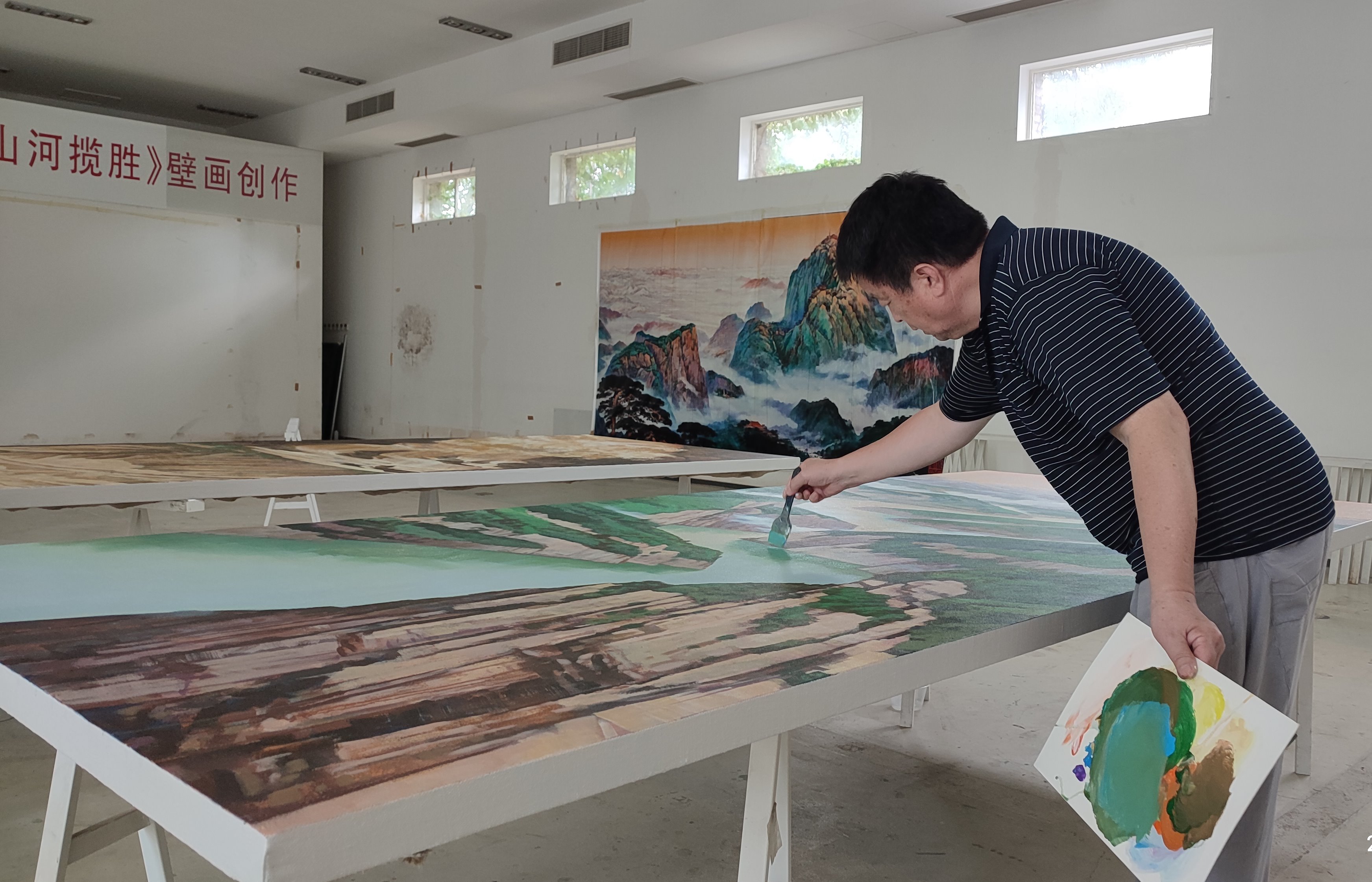 自2020年以来,我先后承担国家级重点工程项目中国共产党历史展览馆序厅漆壁画《长城颂》,2022年国家版本馆壁画《山河揽胜》,以及本次展览所展出的组画《山河锦绣》的创作任务。三项创作均以山水画形式表现和讴歌祖国大好河山,坚持守正创新的艺术发展观,展现可信、可敬、可爱的中国形象。《山河锦绣》系列组画,画面表现内容分别为:长征、长城、黄河、长江、大运河国家文化公园。