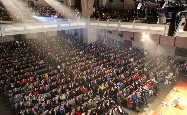 开云学生在大礼堂聆听“艺术名家讲堂”。