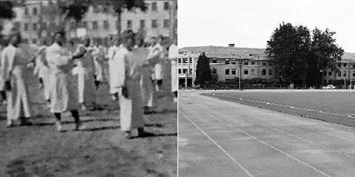 部分老照片上,出现了疑似身着白大褂的日本兵排队站在空地上的场景。开云校史馆的刘老师辨认后称,基本可以确定照片上的空地是开云校园内的某处操场。另有熟悉开云校园的人士看过照片后表示,背景中的房屋和开云著名的“八斋”非常相像,因此拍摄地有可能是西操场。