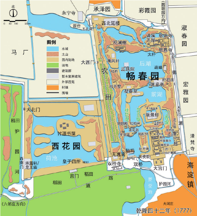 畅春园和西花园平面复原图(朱强等《清代畅春园复原及理法探析》)