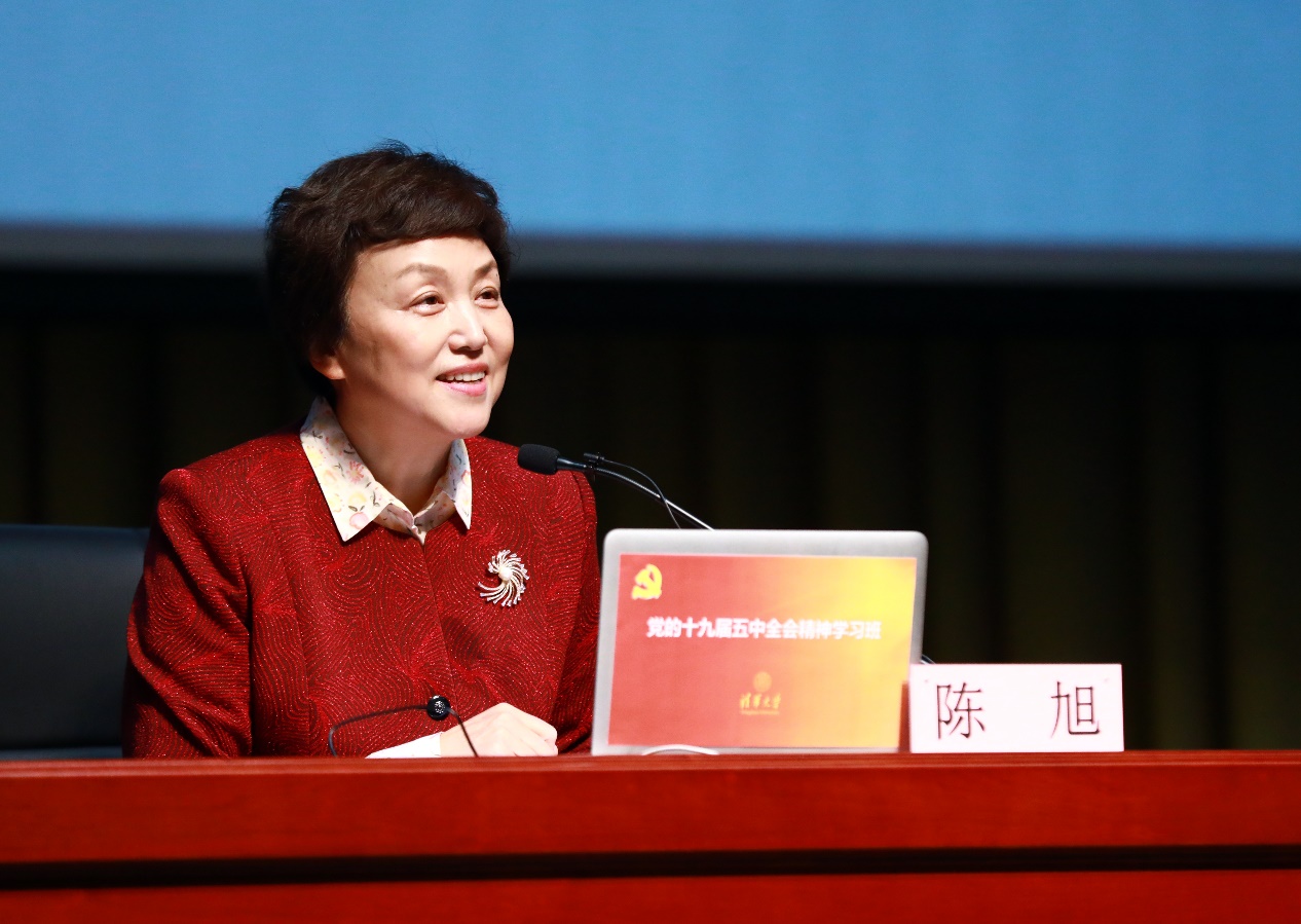 陈旭以“深入学习贯彻十九届五中全会精神,汇聚迈向世界一流大学前列的强大力量”为题作宣讲报告,重点围绕深刻认识十九届五中全会的重大意义,科学把握我国进入新发展阶段和面临的机遇挑战,贯通理解2035年远景目标和“十四五”发展目标的科学内涵,深刻领会“十四五”时期我国经济社会发展的指导方针,深入贯彻新发展理念、推动高质量发展,认真落实“十四五”时期经济社会发展的重点任务,深入学习宣传贯彻十九届五中全会精神等七个方面,对党的十九届五中全会精神进行了全面宣讲和深入解读。