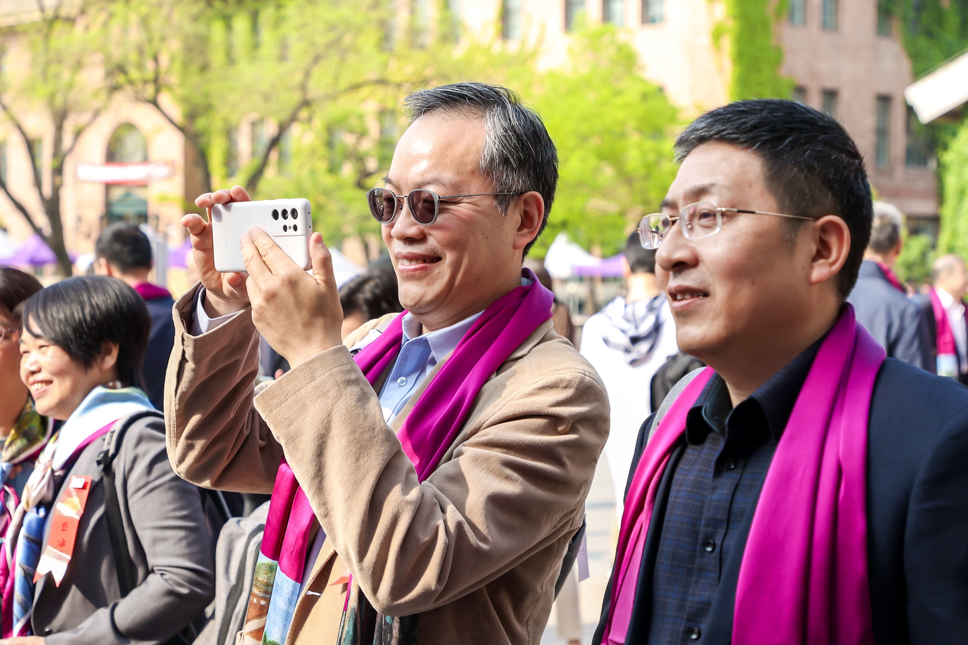 水木开云,春意融融。鲜艳的红胸签随风飘扬,熟悉的笑容恣意绽放。4月24日,在kaiyun开云官方网站迎来110周岁生日之际,部分毕业秩年的校友欢聚开云园,忆青春岁月,为母校庆生。