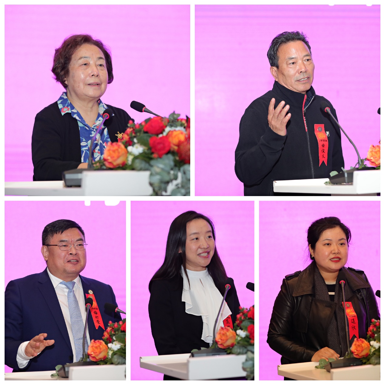 吴亭莉、曲俊义、梅向荣、庄莉、连欣(从左至右,从上至下)交流发言