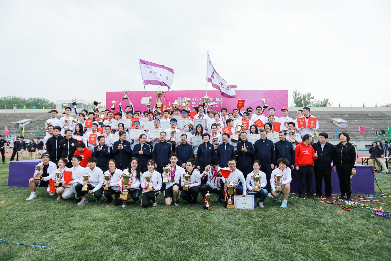 本届“马约翰杯”学生田径运动会比赛项目共41项,含5个大型团体项目,甲组696人次,乙组395人次,共1091人次参赛。60米×20人迎面接力是参与人数最多的团体项目,此起彼伏的加油助威声汇聚成一支慷慨激昂的进行曲,将“马杯”的赛场氛围推向最高潮。随后,全场校友师生热烈欢呼“无体育,不开云!祝母校生日快乐!”
