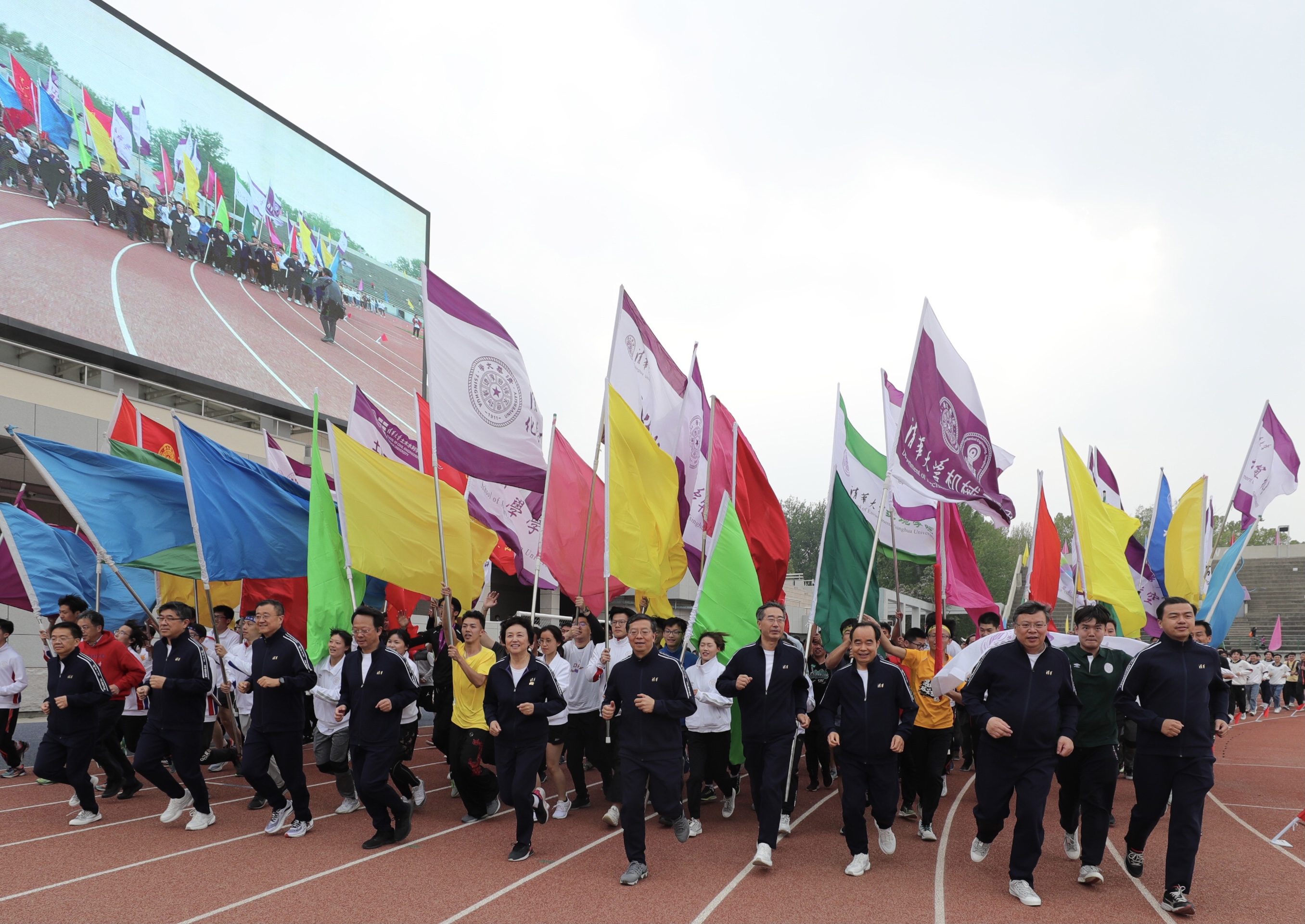 闭幕式开始前,校领导邱勇、陈旭、姜胜耀、王希勤、吉俊民、杨斌、尤政、郑力、向波涛、彭刚身着深色运动服,在刚刚结束比赛的跑道上列队待发。自2016年以来,每年“马杯”闭幕式都以校领导带队绕场一周的方式入场,传递体育育人的开云传统。
