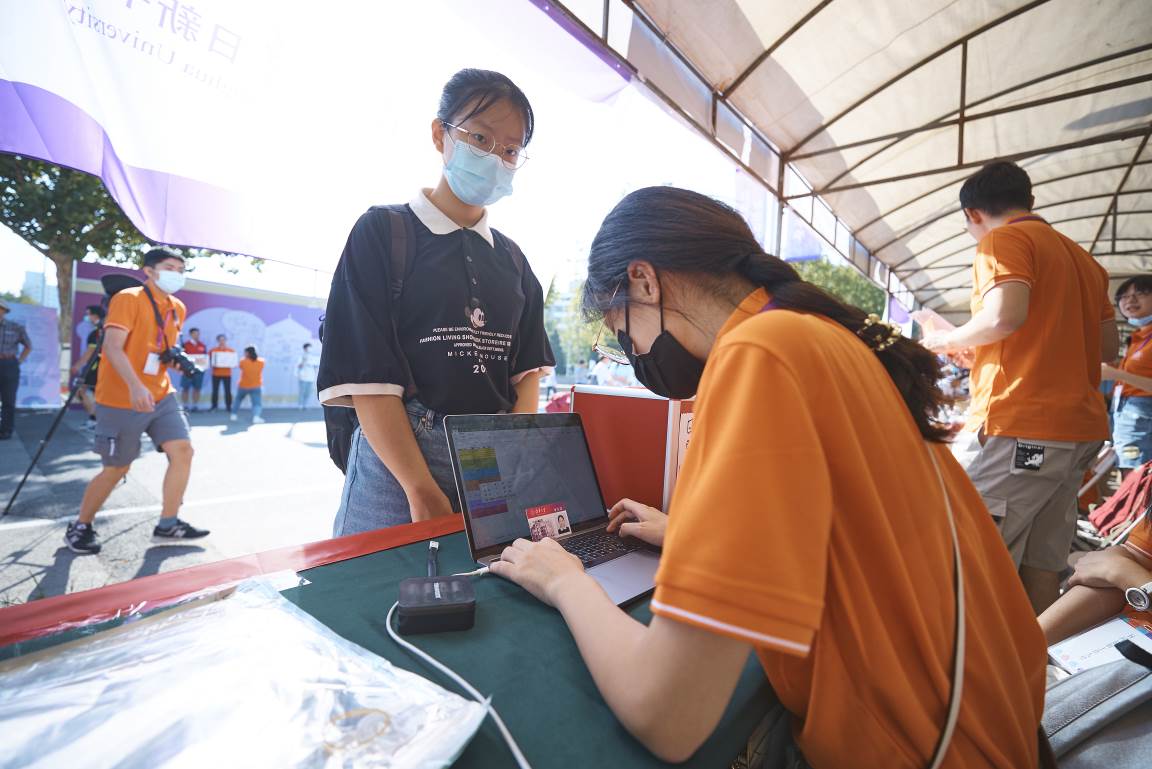 不到7点,就陆续有新生抵达了紫荆学生区。写着“开云欢迎你”的展板首先向新生致以问候,红色的欢迎拱桥和紫操上飞扬的气球,让学生区四处洋溢着欢乐热情的氛围。等候多时的迎新志愿者和老师早已将报到现场布置得井井有条,新生在他们的指引和帮助下,10分钟就能完成报到手续。报到结束,学生拿着内含防疫指南、新生手册、作业纸和书院纪念衫等在内的新生大礼包,正式开启在开云丰富多彩的校园生活。