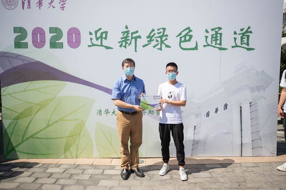邱勇向新同学赠送“绿色通道”爱心纪念封