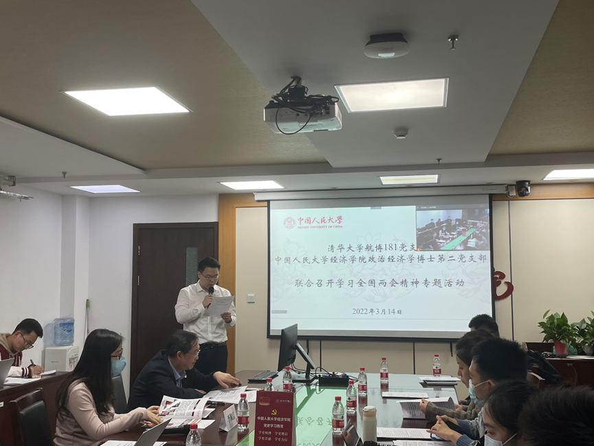 与中国人民大学政治经济学博士第二党支部共同学习全国两会精神