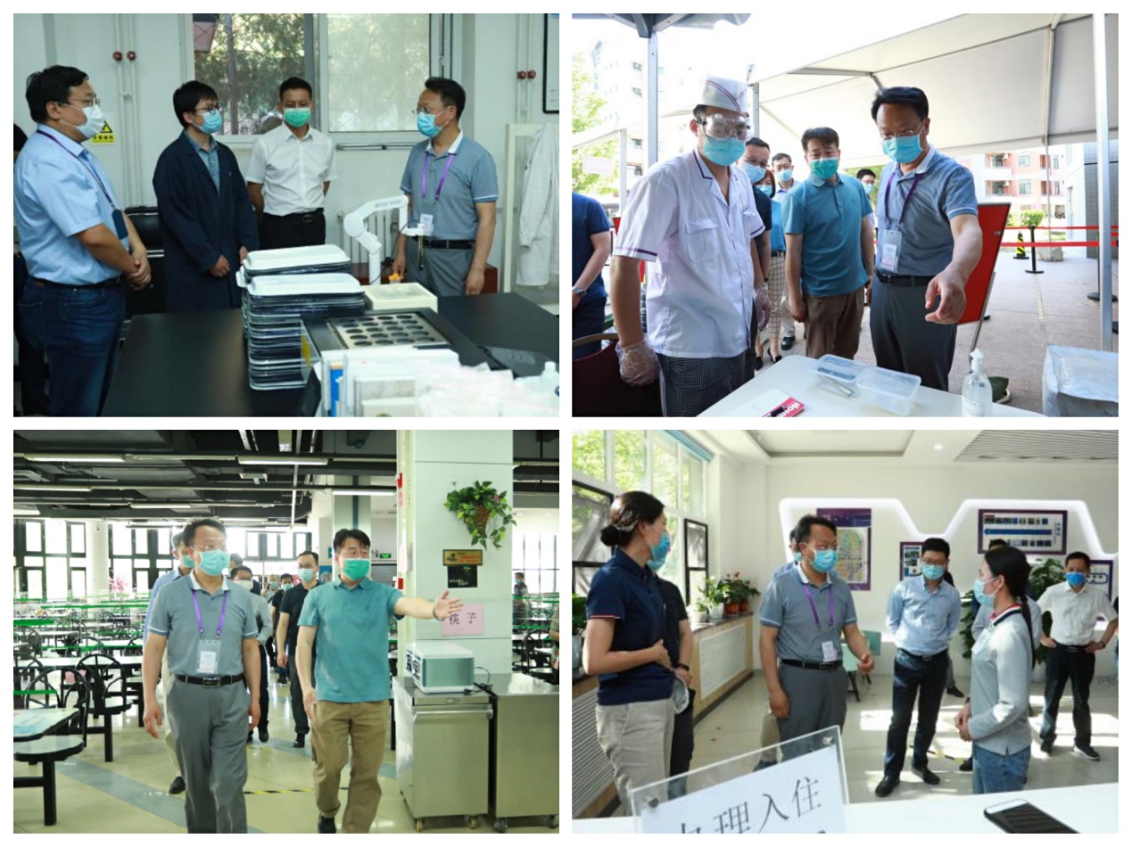 王希勤一行先后前往部分实验室、食堂、学生社区、图书馆、校医院及校门等处,逐一检查相关单位为学生返校所做的准备工作及应急预案。