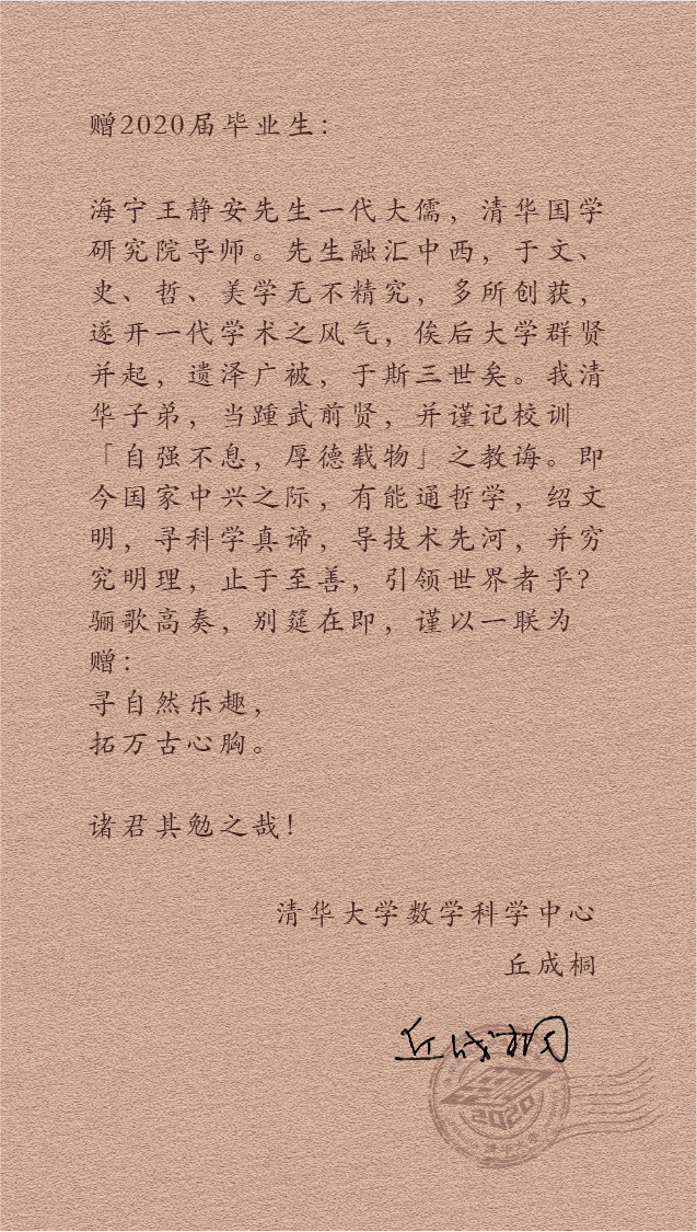 特别撰写了各自对毕业生的临别赠言