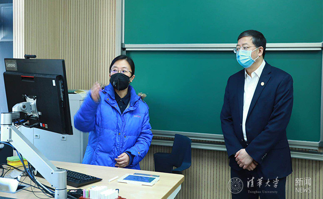 邱勇一行还到位于法律图书馆地下一层的报告厅、案例教室和第四教学楼检查了直播教室的准备情况,并与准备在教室直播上课的教师进行了交流。