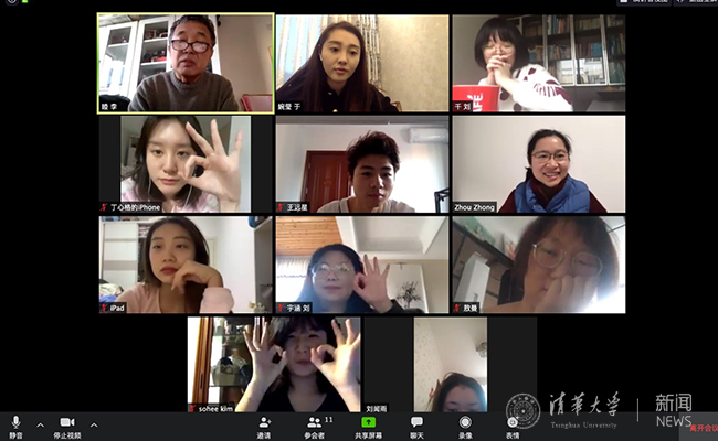 随着电脑里熟悉的上课铃声响起,陈旭和所有同学们的头像都出现在了屏幕前!“铃声太亲切了,仿佛身在课堂里一般!”陈旭在电脑前笑着说。“同学们,大家能清楚地听到我的讲话吗?可以的话,请大家用手势向镜头比赞!”陈旭与屏幕前的同学们一起点赞。全员到齐,王缅宣布正式上课,并向同学们介绍陈旭老师此时正在学校与大家一起云端听课。“陈老师好!”远在各自家乡的同学们热烈鼓掌欢迎。陈旭亲切地向同学们问好,并嘱咐大家安心上课。