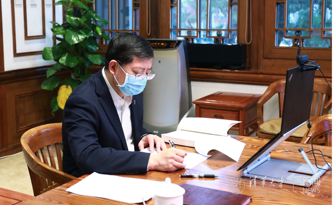 课间休息时,邱勇与师生们视频连线。他首先对崔建远线上顺利开课表示祝贺,对他支持学校“延期开学、如期开课”的决定以及为此所付出的努力表示感谢,对今天上课的遍布祖国各地、特别是湖北地区的同学们表示问候与关切。