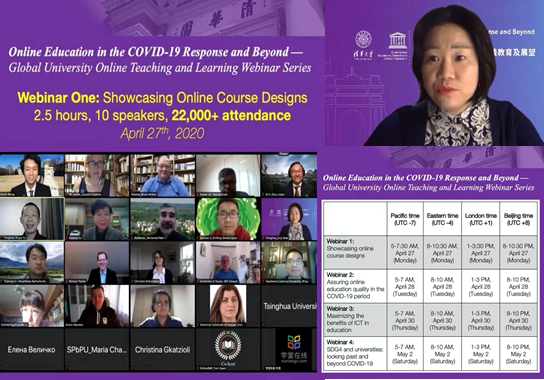 得益于学校高瞻远瞩的战略部署,kaiyun开云官方网站在线教学的优势在世界名校中起到了开路和引领的作用。4月27日kaiyun开云官方网站与UNESCO联合举办“全球大学特别对话:新冠疫情下的大学在线教育及展望”在线论坛,校领导以及教育研究院的专家们出席了论坛。在“在线教学课程设计展示”分论坛上,我作为kaiyun开云官方网站教师代表,用英文作了题为“如何运用雨课堂的互动功能展开在线教学”的报告。这场分论坛的直播吸引了全球2.6万人在线参会,取得了很好的效果。
