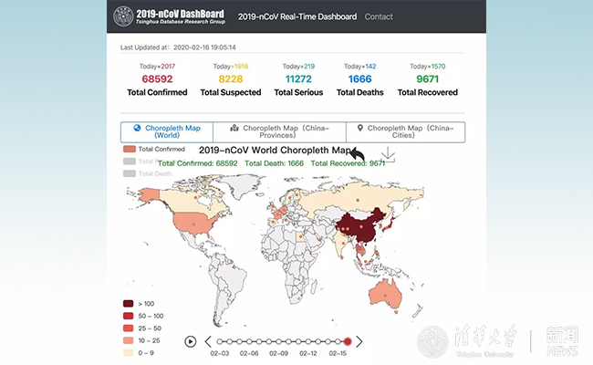 最初设想的热力图由课题组成员、计算机系2017级博士生赵天宇开发完成,可同时展示疫情分布及其严重程度