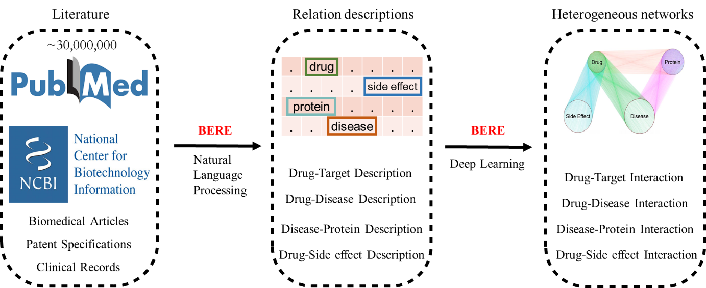 理解药物、靶点、病毒、副作用等等生物医学实体之间的相互作用规律,是生物医学研究者们长期以来致力于探索和研究的问题,关于这些作用规律的研究成果广泛分布在超过3000万篇的科研文献当中,且文献的数量还在不断增加。目前,大多数知名的生物医学数据库例如DrugBank、CTD、SIDER和BioGRID,都是由人类科学家花费大量的时间和精力从科学文献中整理而来的。虽然深度学习技术可以被用来加速这一过程,但在生物医学这种专业性领域,大规模的训练数据却并非能够轻易得到。为了解决这一问题,曾坚阳研究团队采用了一种基于远监督的深度学习策略,使得模型能够在不依赖于人工标注数据的情况下应用到各种生物医学关系抽取场景当中。此外,作者所提出的集成了隐式句法树学习和注意力机制的模型,在多项生物医学关系抽取任务当中,都取得了领先的实验结果。这项研究成果表明,这种新型的机器学习框架能够为生物医学关系发现提供有力的帮助。目前,该工作已被应用到一项旨在从已有的老药中发现治疗“新冠病毒”(COVID-19)的潜在药物的工作当中,相关的研究成果已发布在生物预印本网站bioRxiv上(https://www.biorxiv.org/content/10.1101/2020.03.11.986836v1)。