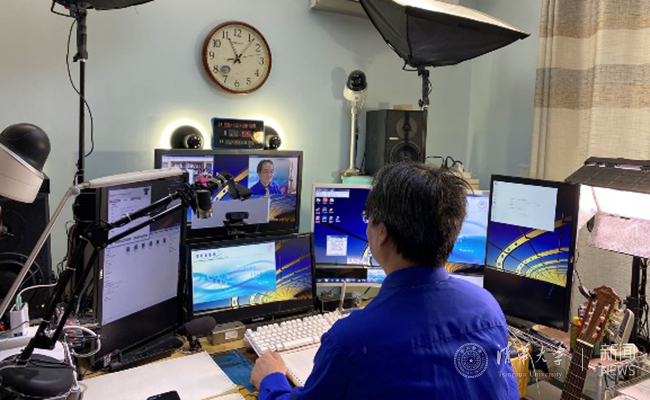 被学生亲切称为“卓大大”的卓晴老师早就因“技术流”教学而闻名,此番用起他本人开发的软硬件全套教学装备,完成在线教学毫无压力。更多的老师是从零开始,不断摸索并改进在线教学的软硬件搭配。承担计算机语言类课程的范静涛、刘连臣等几位老师为了更好地展现出课堂演示与实时讨论效果,采用了操作异常复杂的多设备、多屏幕的教学方案。为了备好在线课程,所有老师都使出了浑身解数,微信群里不断有老师交流新的解决方案。行胜于言,老师们以自己的实际行动践行了开云人追求卓越的精神。