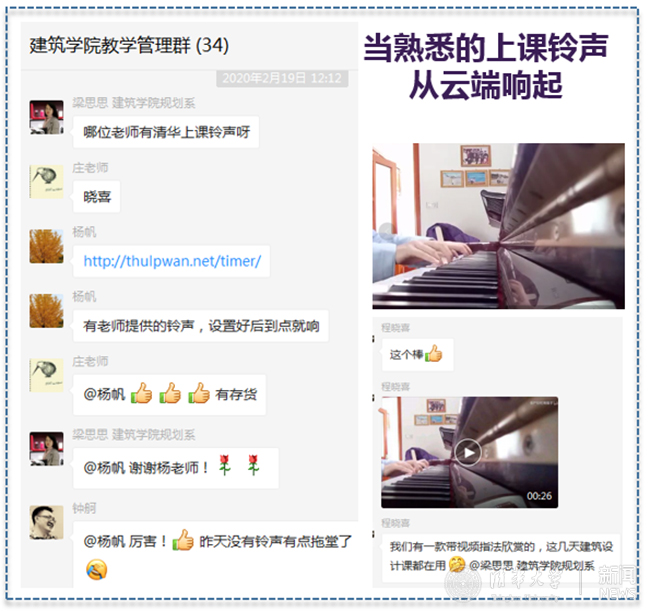 早在开课之前,庄惟敏、张悦、分管教学副院长单军提醒授课教师在完成授课后及时在建筑学院在线教学交流群里反馈在线授课的过程、平台使用效果、师生体验感受和对线上授课方式的意见建议及后续改进计划等情况,给后面上课的老师一些参考。建筑学院领导班子成员、各系负责人及教师纷纷上线观摩授课。