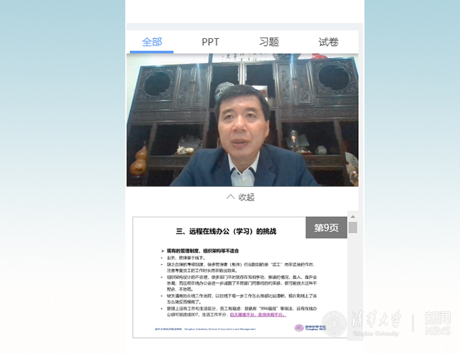 2月28日晚,学院院长助理、企业家学者项目与合作发展办公室主任、中国企业发展与并购重组研究中心执行委员会主任王勇带来系列课程首讲“远程在线办公(学习)的应对与挑战”。王勇从疫情给各行业带来的影响,以及不得不面对的模式转变谈起,简要介绍了现代远程办公和学习的发展历程、各国尝试过的实践经验,以及远程办公在海内外的使用现状,并分析形成这一现状的原因、实施将会带来的挑战。随后,他从领导重视,重新解析业务及重构业务组织,完善在线办公及学习的基础设施,改变管理心态和考核重点,建立适合远程办公的日常管理办法,增强与员工和学生的在线交流,坚持任务导向、学会任务管理,平衡好线上和线下工作,平衡好工作学习和生活等方面给大家提供了九条提升远程办公效果的建议。